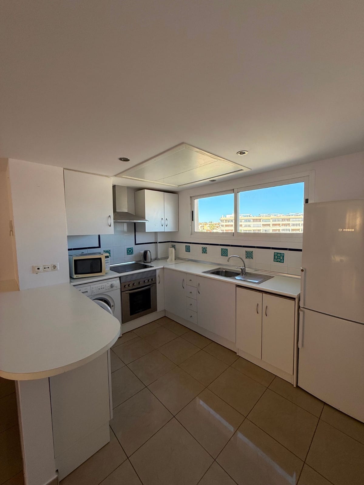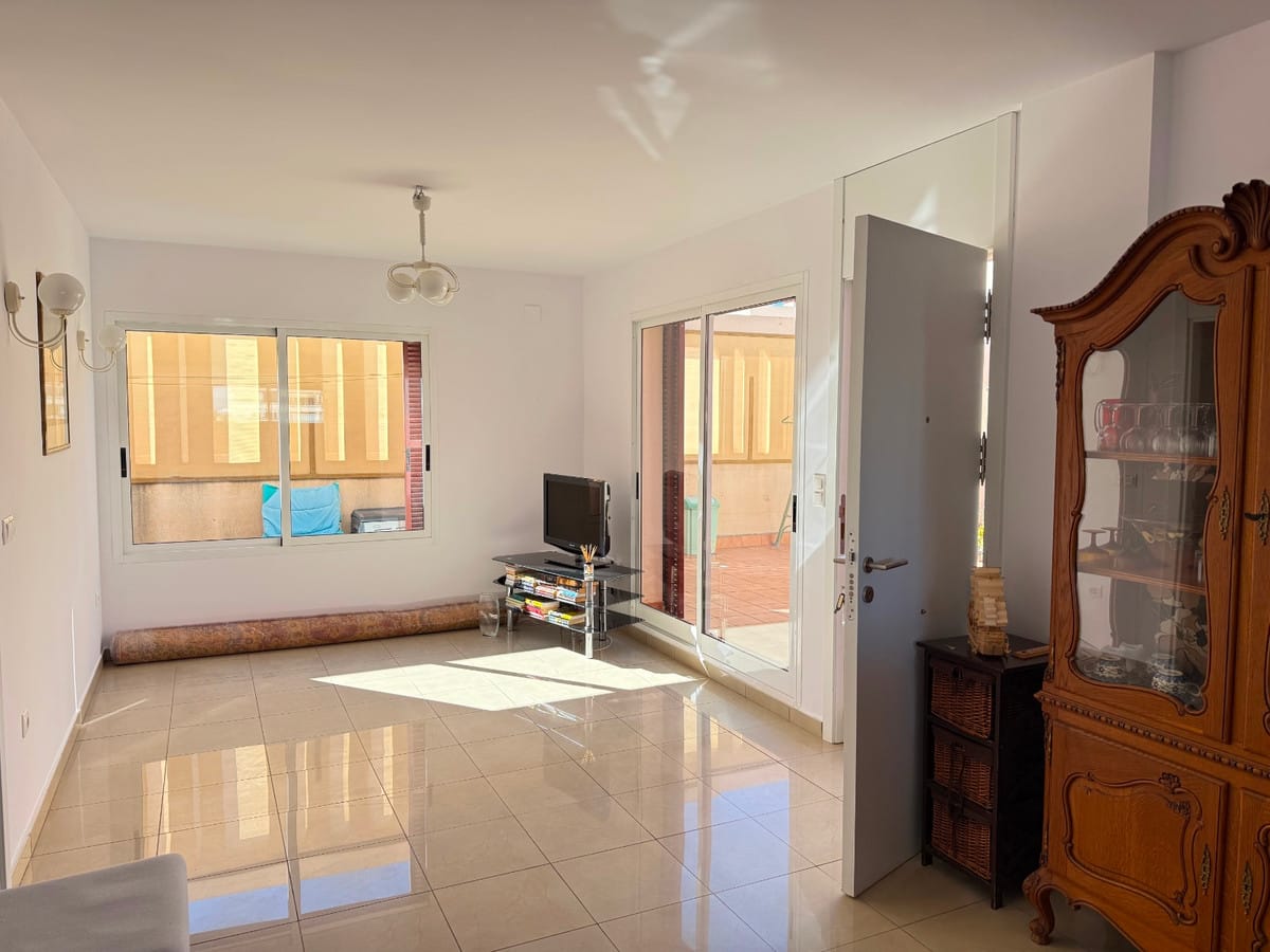 The property consists of two bedrooms, one bathroom, a large living-dining room with an open-plan kitchen, and a charming patio. It also features a private solarium, perfect for sunbathing and relaxing all year round. A private parking space is included in the price.